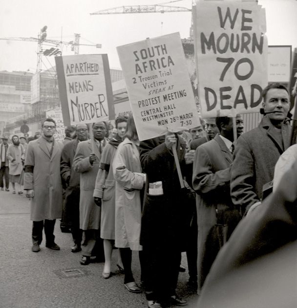 Manifestació en protesta per l’aparthaid i les víctimes de Sharpeville. Font: Anti-Apartheid Movement Archives