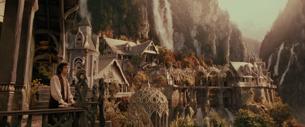 Rivendell i Lothlórien són ciutats èlfiques envoltades d’aigua, no només perquè l’aigua sigui un element sagrat sinó també perquè, com indica la seva etimologia, ofereix protecció contra el mal. Això es pot observar a La Germandat de l’Anell de Peter Jackson (2001), quan Arwen duu Frodo a Rivendell per guarir-li la ferida infligida pel Rei Bruixot a Amon Sûl. Quan els Nazgûl s’apropen al límit del riu, els espectres s’aturen a la frontera. Com s’explica a la novel·la, els Nazgûl es mostren com a éssers que no són ni vius ni morts, són éssers que no poden exposar-se a la llum ni a l’aigua: