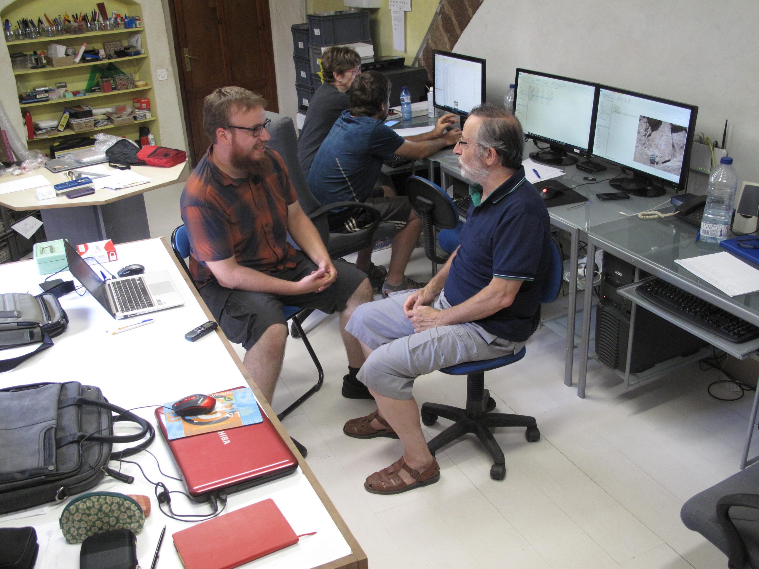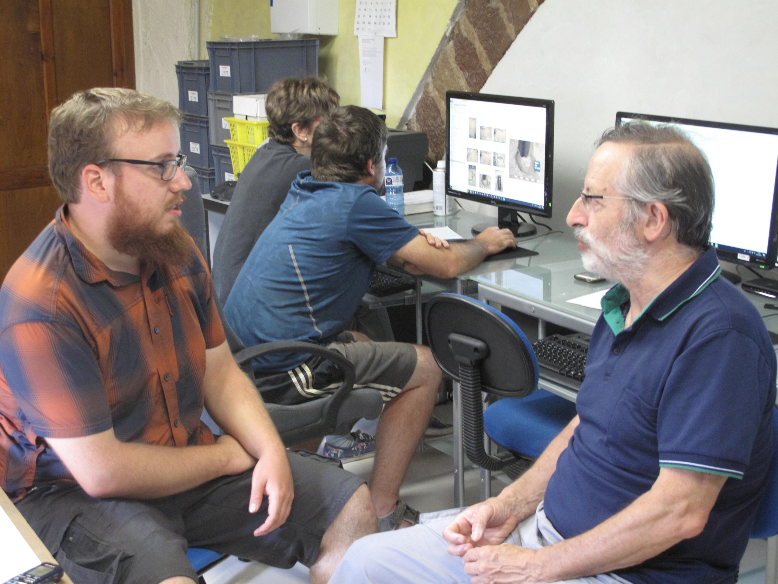 Fotografia presa durant el transcurs de l'entrevista. Al fons, podem observar la importància de la informatització de la informació arqueològica. Font: CEM