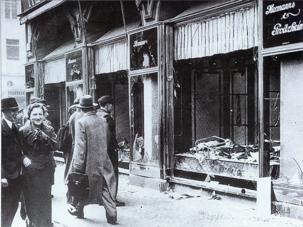 1↑ | La “Nit dels cristalls trencats”, ocorreguda el 9-10 de novembre de 1938 fou un gran pogrom ocorregut a l’Alemanya del III Reich dut a terme per membres de les SA i civils contra comerços jueus i amb molts linxaments. L’actitud de les forces de seguretat fou de total passivitat i complicitat amb els perpetradors. |